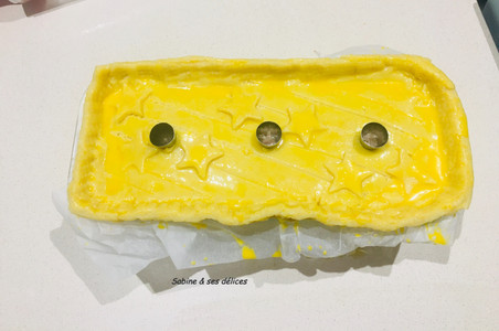 J'oublie pas de faire des cheminées, cela consiste à percer le chapeau pour laisser les vapeurs sortir. J'ai mis des douilles de pâtisserie pour cela.